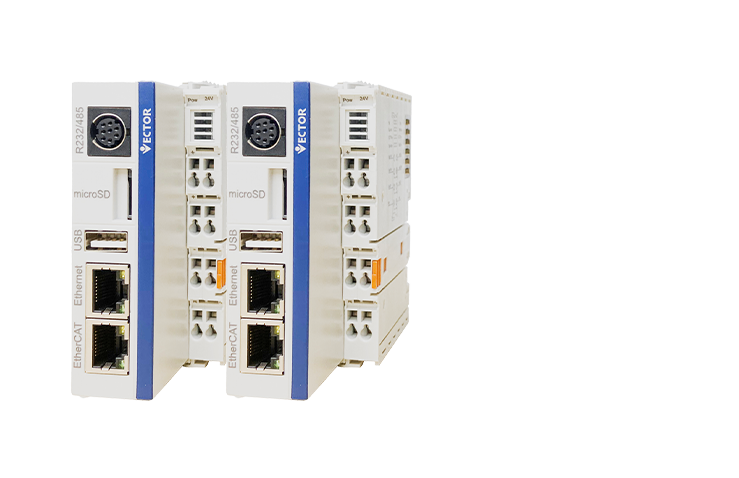• 威科達(dá)VE系列運(yùn)動控制器,搭載高性能CPU(4核1.6GHZ主頻)具有強(qiáng)大的運(yùn)算能力,基于linux系統(tǒng),采?CODESYS編程?具,?持IEC61131-3國際標(biāo)準(zhǔn)的6種編程語?的高性能運(yùn)動控制器。標(biāo)配EtherCAT工業(yè)以太網(wǎng)實時總線,可以實現(xiàn)最大64軸同步控制。